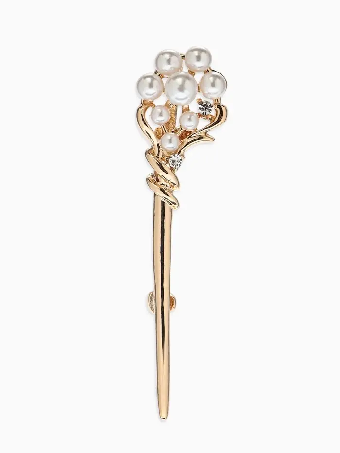 Брошь «Факел» жемчужный, цвет белый в золоте