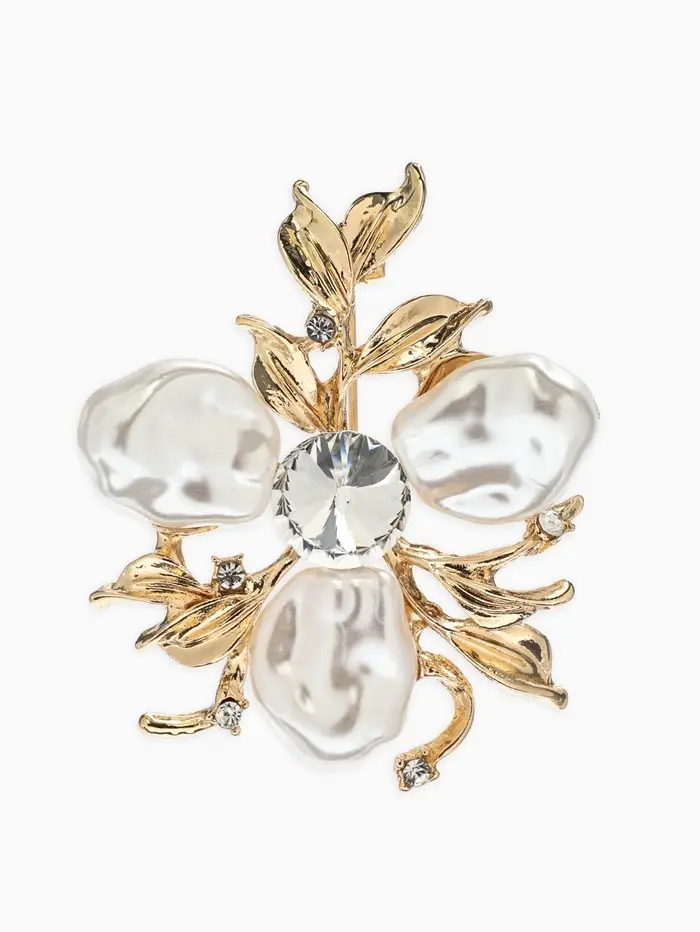 Брошь «Цветочек» роскошный, жемчуг, цвет белый в золоте