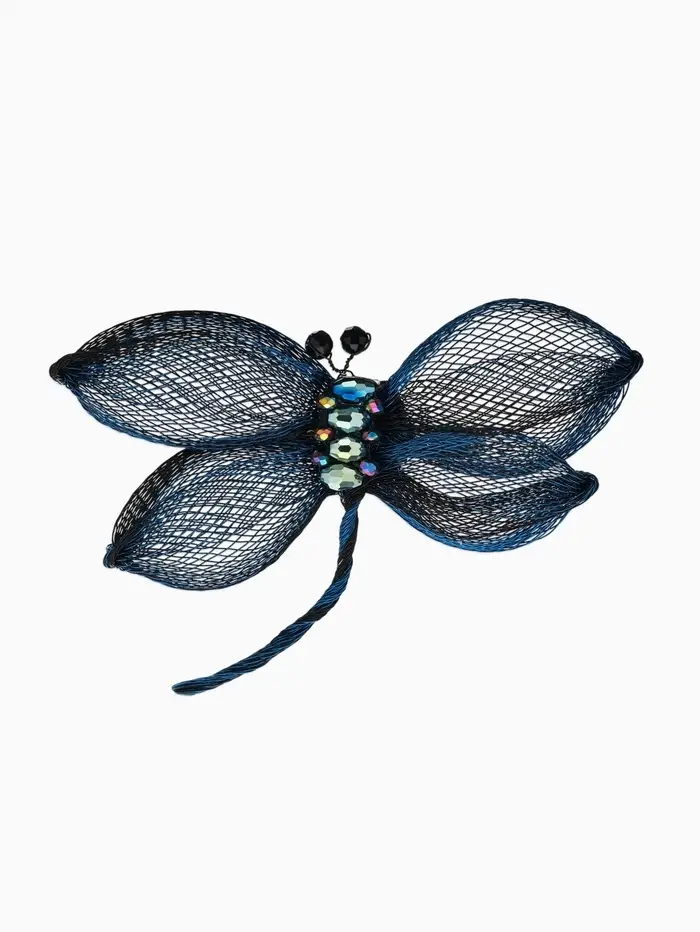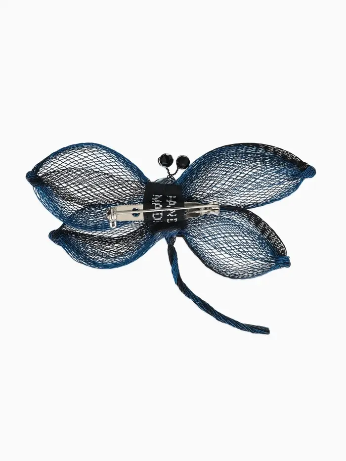 Брошь «Стрекоза» плетёная, цвет сине-чёрный