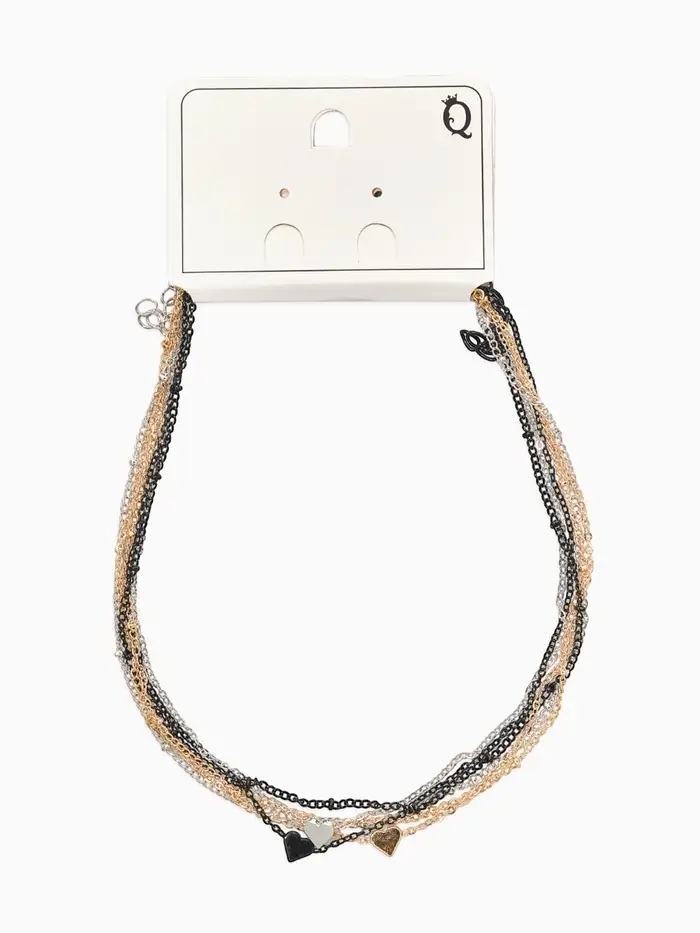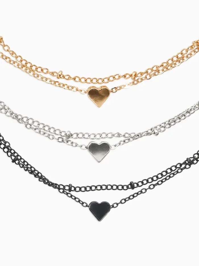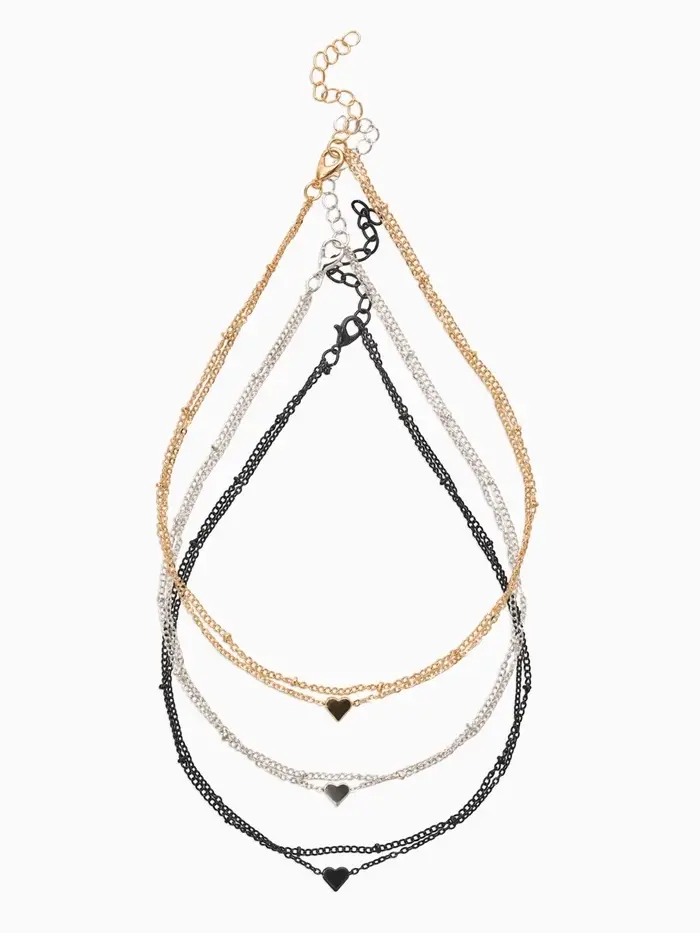 Кулоны на цепочке «Сердце», набор 3 шт. L=35 + удлинитель 7 см, разноцветный