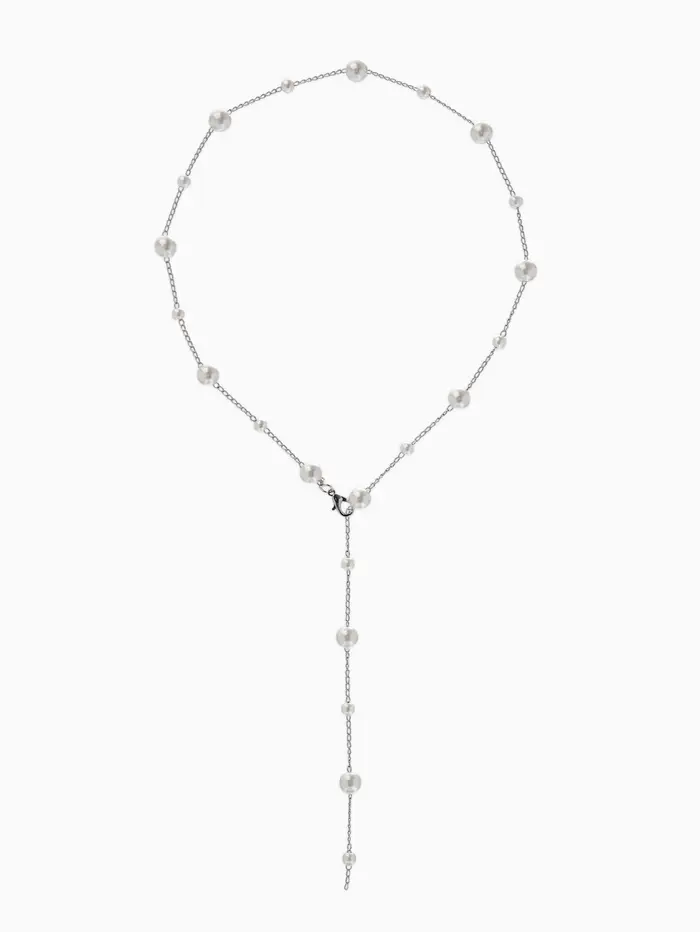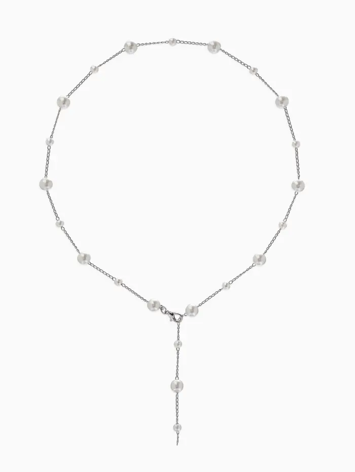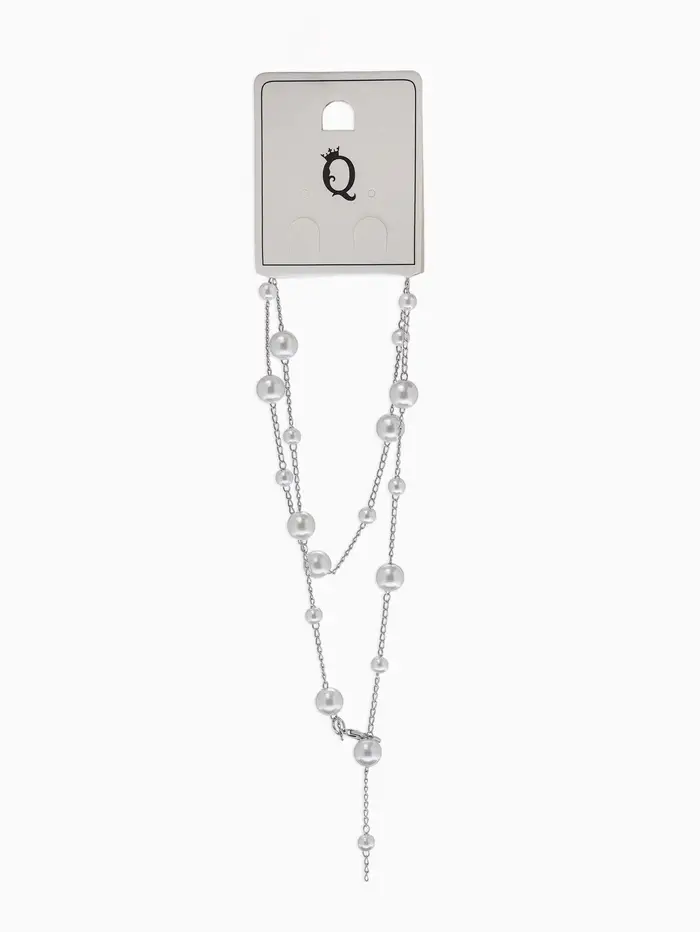 Кулон-трансформер «Россыпь жемчуга", регул-я застежка, бус №6,8,L=50см, цвет белый в серебре 10969