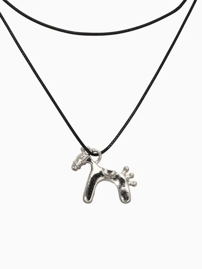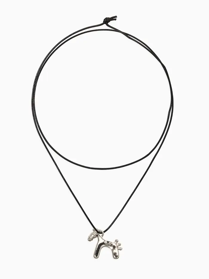 Кулон на шнурке "Конь", цвет чёрный в серебре, L=51 см