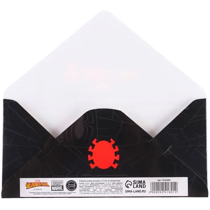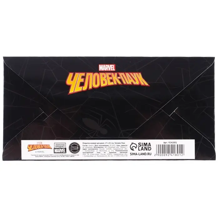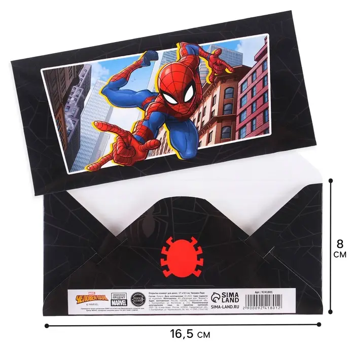 Конверт для денег, 16.5 х 8 см «Супер-мен», Человек-паук