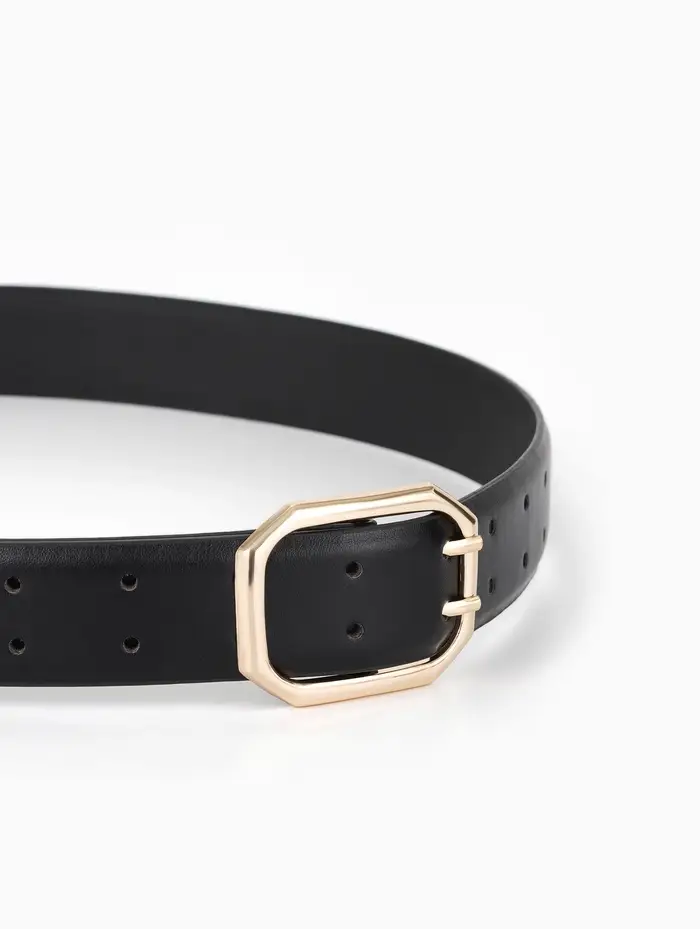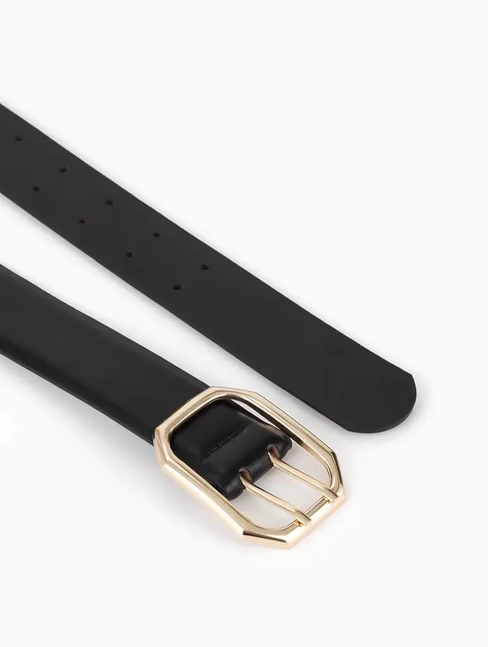 Ремень жен, 06-01-01-02, 3,5*0,3*110 см, без винта, пряжка золото, 2 прокол, черный