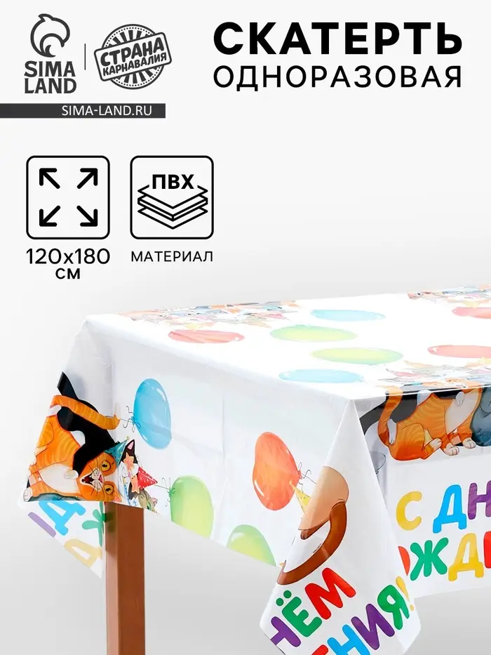 Скатерть одноразовая «С днём рождения», 120х180