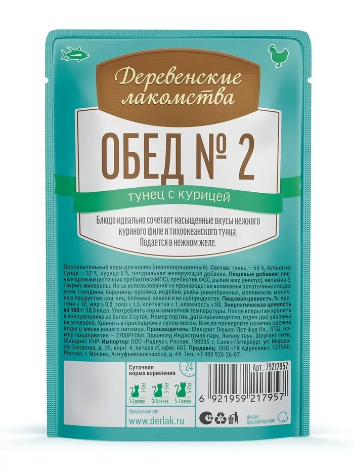 Влажный Корм Для Кошек Деревенские Лакомства«Тунец с курицей» 50г