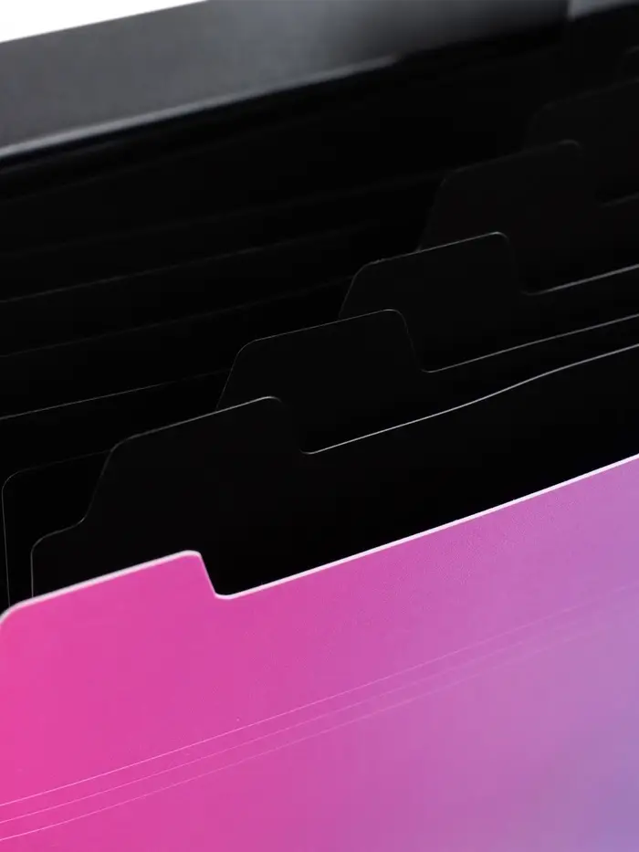 Розово-голубой градиент напоминает о закатном небе, о морских волнах, о чём-то нежном и прекрасном. Такая папка превращает рутинную работу с документами в эстетическое удовольствие. 12 отделений — это максимум возможностей для организации информации. Можно разделить бумаги по 12 предметам, по 12 проектам, по 12 месяцам или по 12 категориям. Плотность 600 мкм гарантирует, что папка сохранит форму даже при полной загрузке, не помнётся и не деформируется. Кнопка надёжно фиксирует все отделения, но открывается легко и быстро. Это выбор для студентов, творческих людей и всех, кто хочет, чтобы даже рабочие инструменты были красивыми и вдохновляющими. Порядок в документах и эстетика в каждой детали — идеальное сочетание.