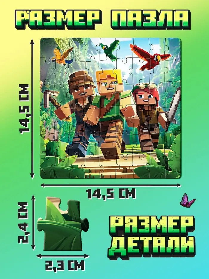 Яркие блоки, узнаваемые силуэты и стиль ретро-игр — этот пазл переносит ребёнка в увлекательную вселенную пиксель-арта. Всего 54 детали, и уже готова целая сцена, которую можно не только собрать, но и повесить на стену! Рамка делает картинку завершённой, а сборка — уверенной: никаких потерянных уголков и удобное хранение.