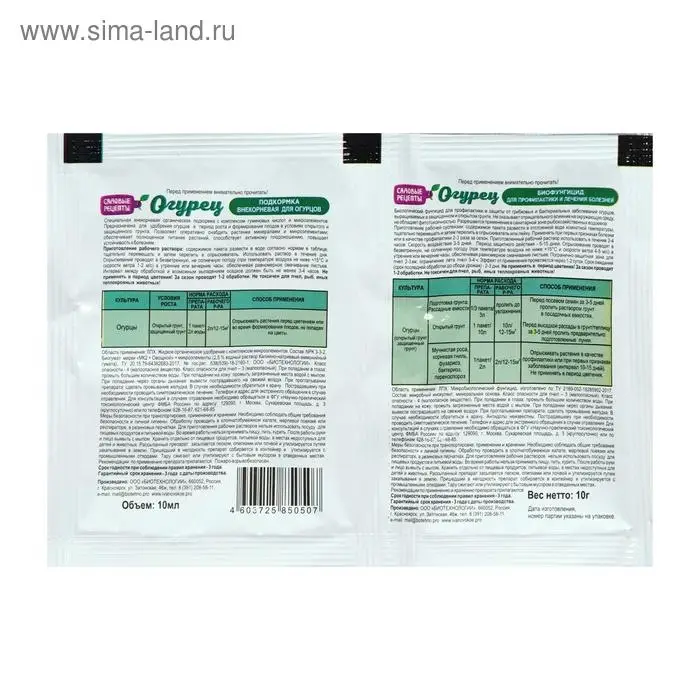 Биофунгицид и подкормка 2 в 1 Огурец — набор из двух препаратов, включающий в себя: