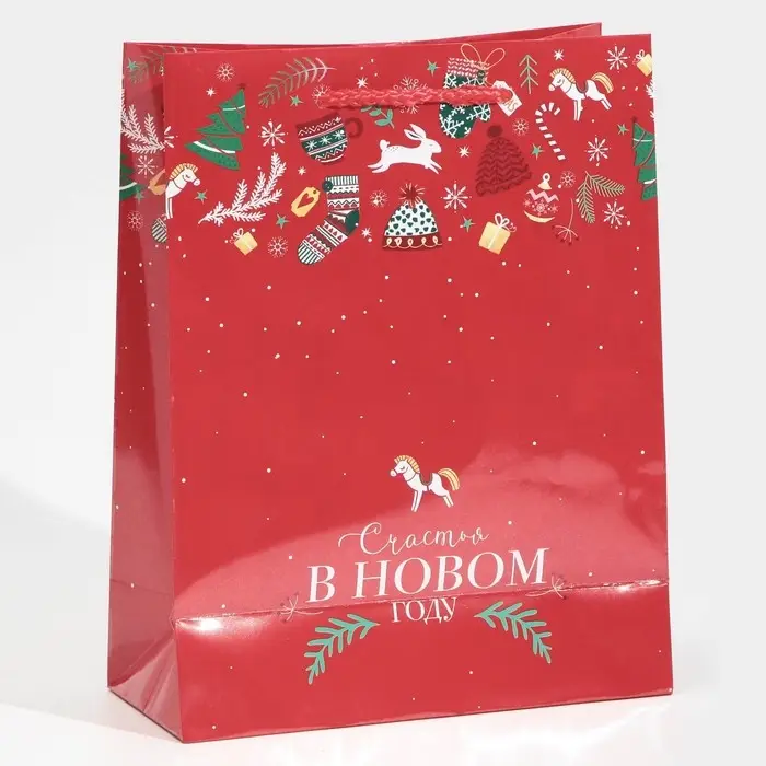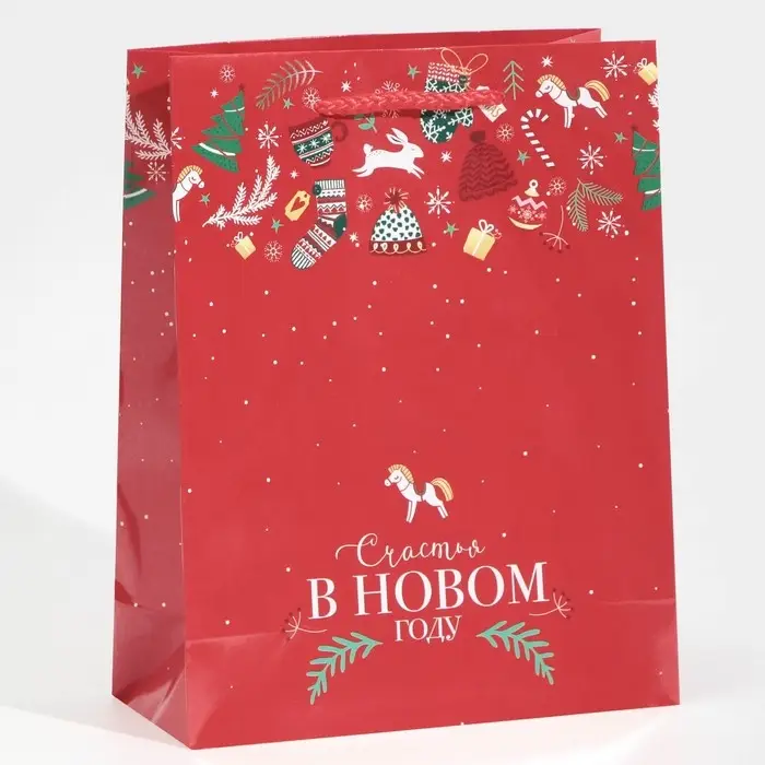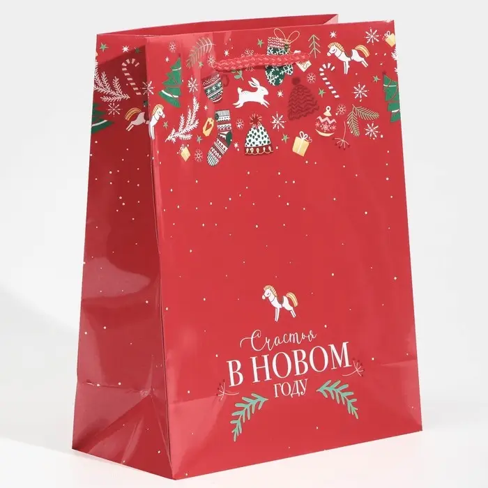 Пакет подарочный новогодний ламинированный «Счастья», MS 18 х 23 х 8 см