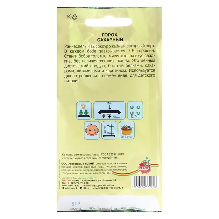 Семена Горох "Сахарный Стручок", среднеспелый, ц/п, 10 г