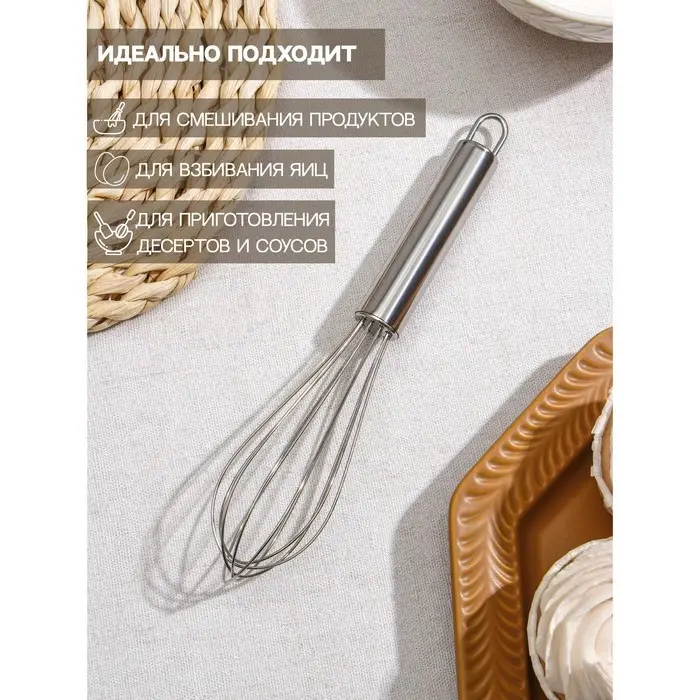 Венчик для взбивания Доляна «Помощник», 24×6 см, цвет серебристый