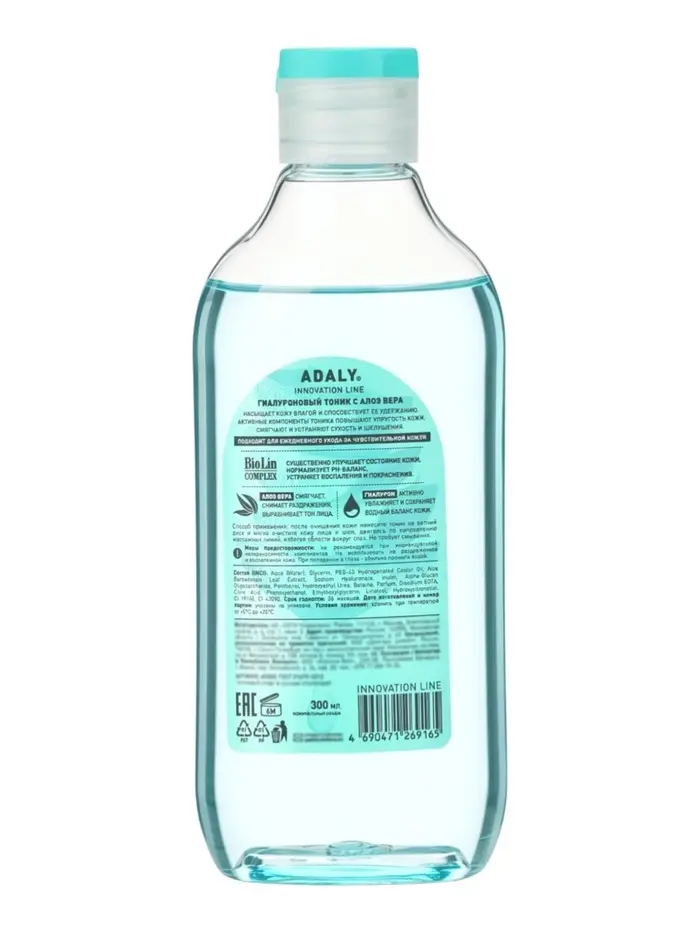 Тоник гиалуроновый для лица Adaly, с алоэ вера, 300 мл