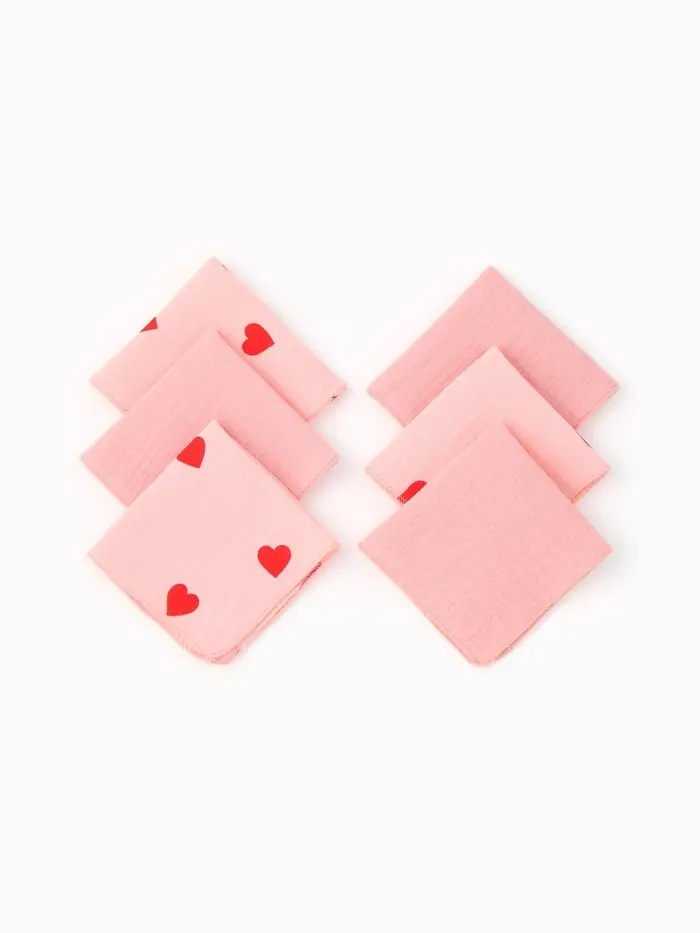 Набор платочков Крошка Я Pink Heart 20*20 см - 6 шт, муслин, 100 % хлопок