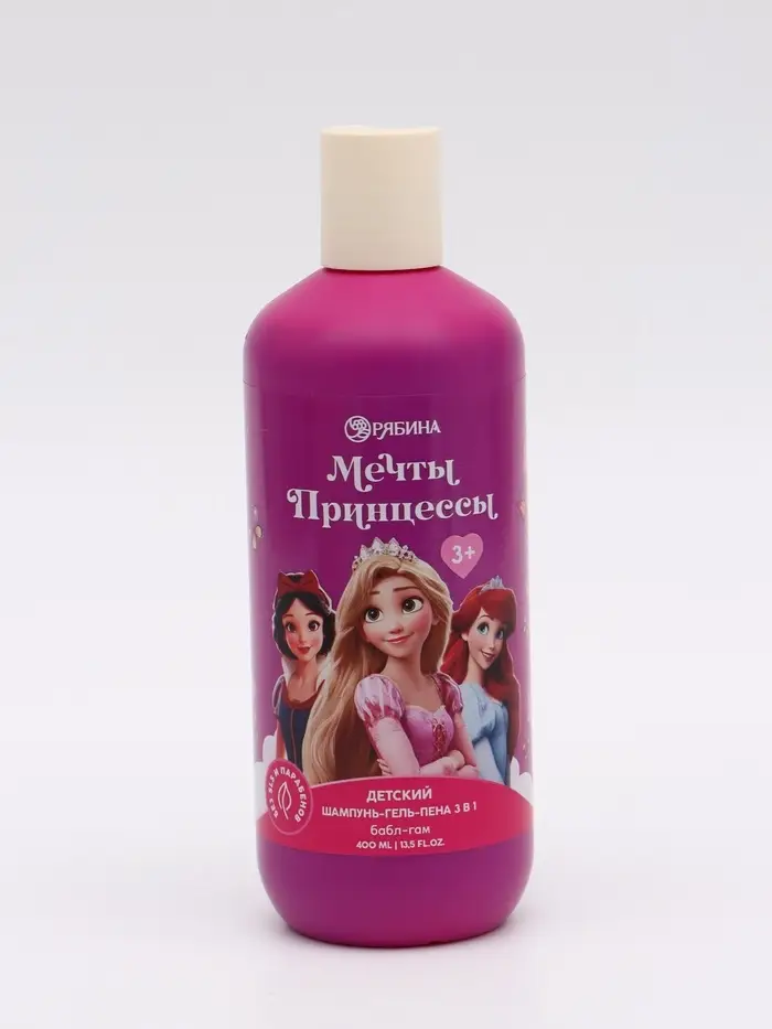 Детский шампунь-гель-пена 3в1, 400 мл, аромат бабл-гам, Принцессы