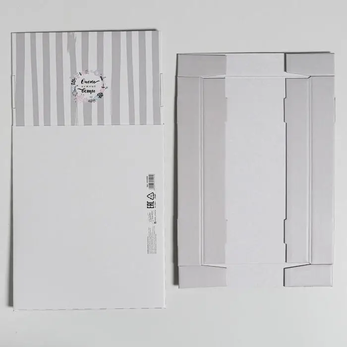 При сборке коробки необходимо тщательно прогибать все беговки (линии сгиба), чтобы крепления плотно вошли в пазы!