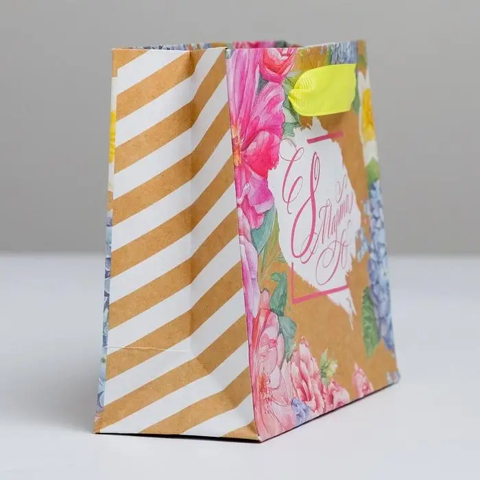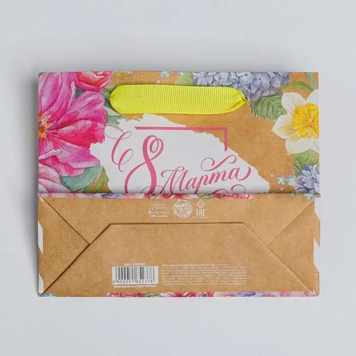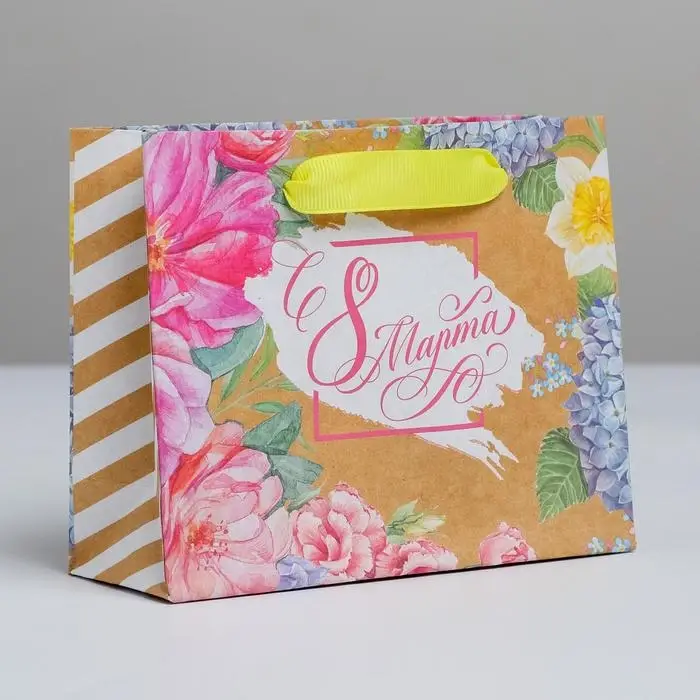 Пакет подарочный крафтовый горизонтальный, упаковка, «С 8 Марта», S 15 х 12 х 5.5 см