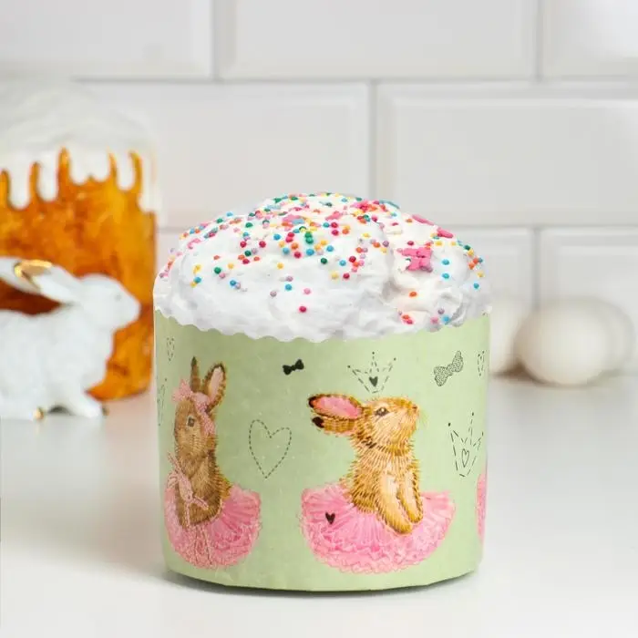 Форма бумажная для кулича «Зайчики», 110×85 мм, МИКС
