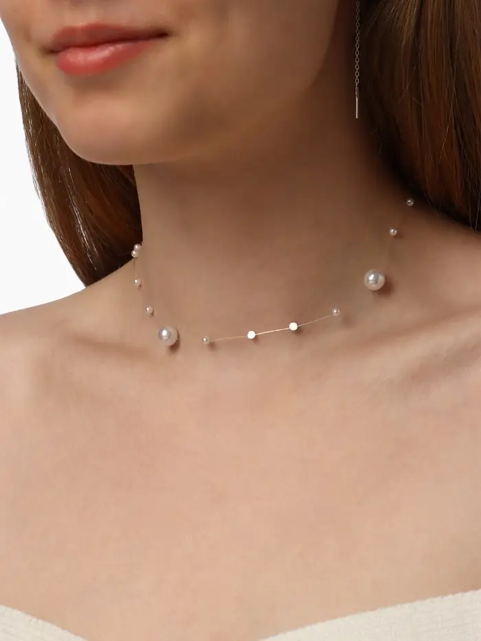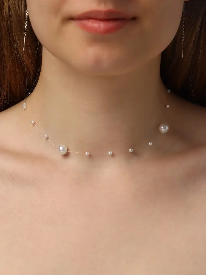 Натуральный блеск пластиковых жемчужин гармонично дополняется прочной леской, которая не только обеспечивает надежность, но и делает украшение легким и комфортным для ношения. Длина 20 см становится универсальным решением, подходящим под различные стили и формы шеи. Отсутствие подвесок — акцент на простоте и классике, что позволяет бусам легко вписаться в любой образ.