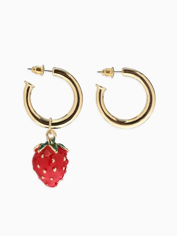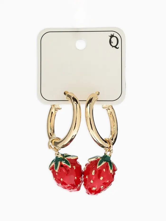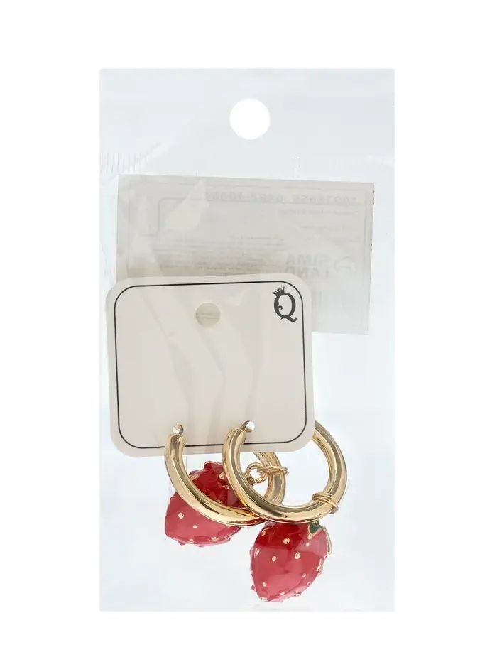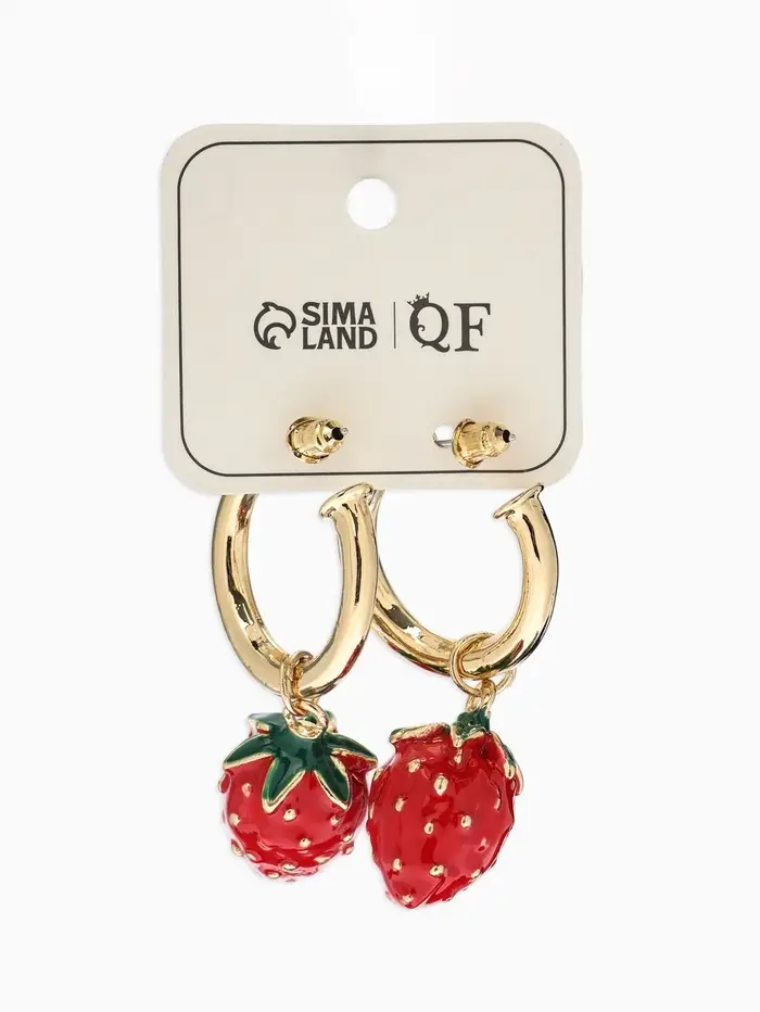 Серьги "Земляника", цвет красный в золоте