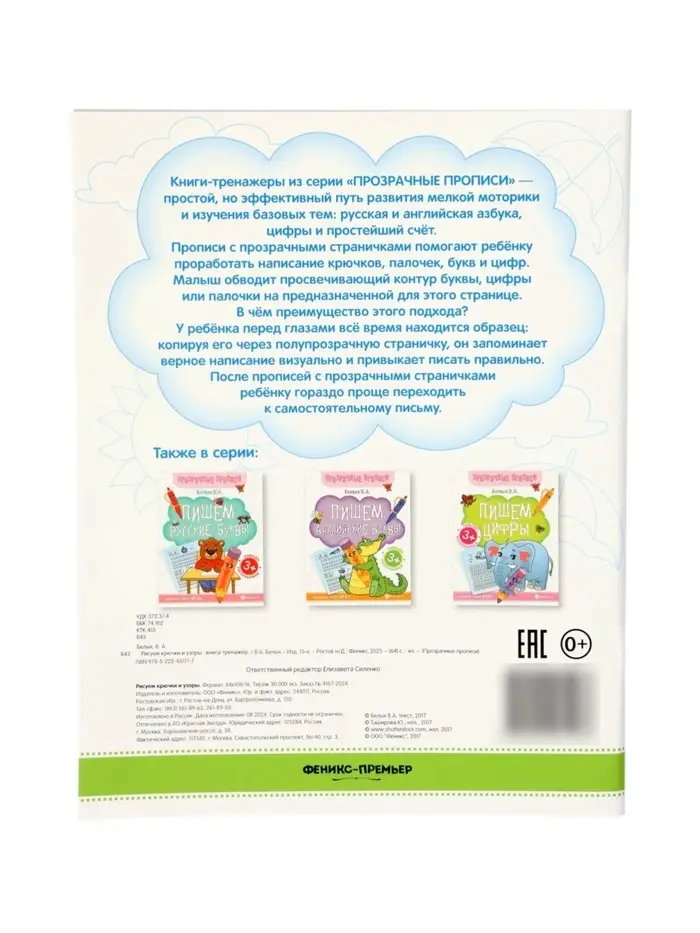 Книга-тренажер "Рисуем крючки и узоры", Белых В.А., 2025