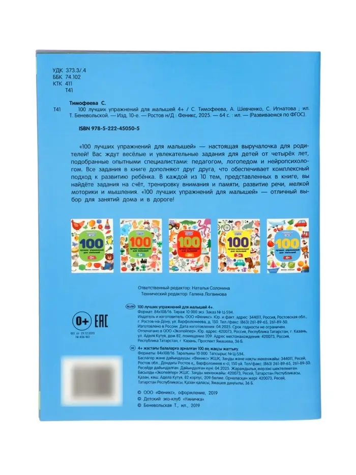 100 лучших упражнений для малышей: 4+, Тимофеева С., 2025