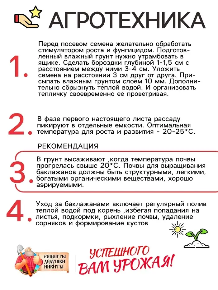 Для тех, кто ценит надежность и отличный результат: баклажан «Король рынка» - это идеальный выбор для начинающих и опытных огородников. Он не требует сложного ухода, стабильно плодоносит и дает вкусные, красивые плоды, которые украсят любой стол и подойдут для всех видов заготовок. Посадите его на своем участке и убедитесь в его королевских качествах!