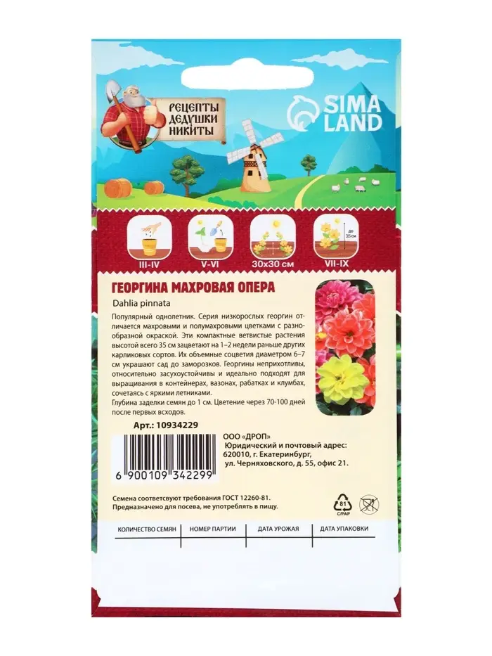 Семена цветов Георгина махровая "Опера", 0,2 г