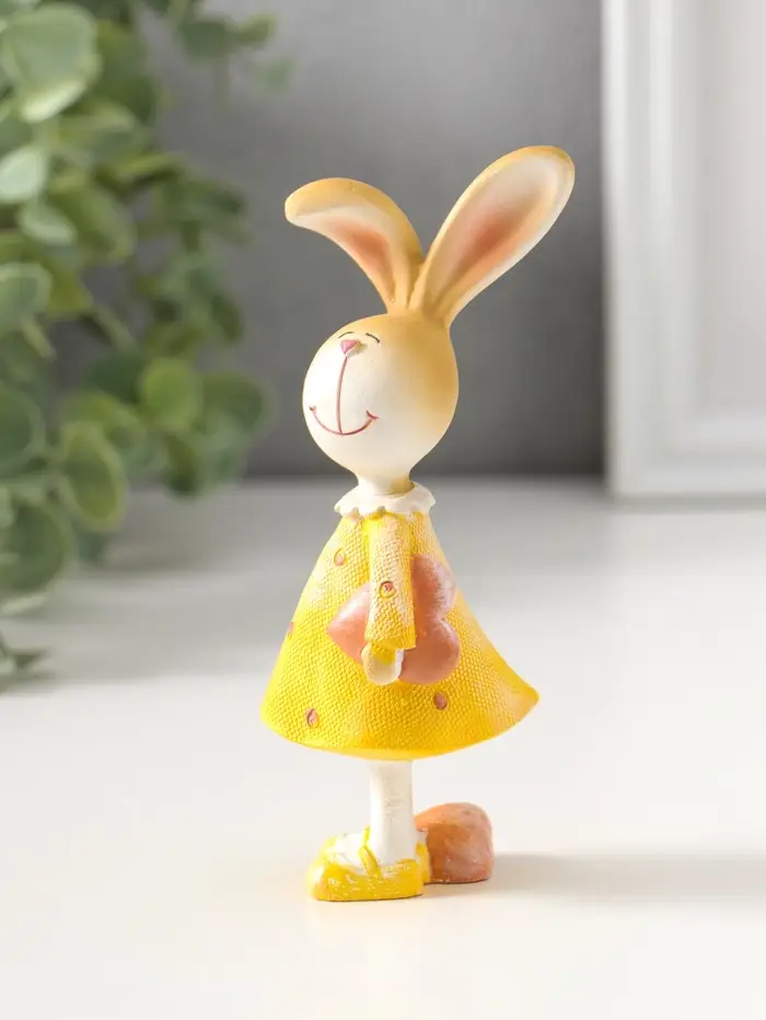 Сувенир полистоун "Зайка в жёлтом платьице, с розовым сердечком" 12,5 см