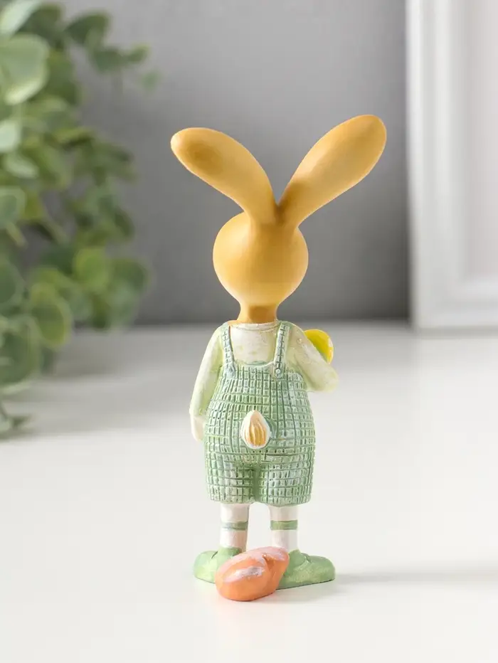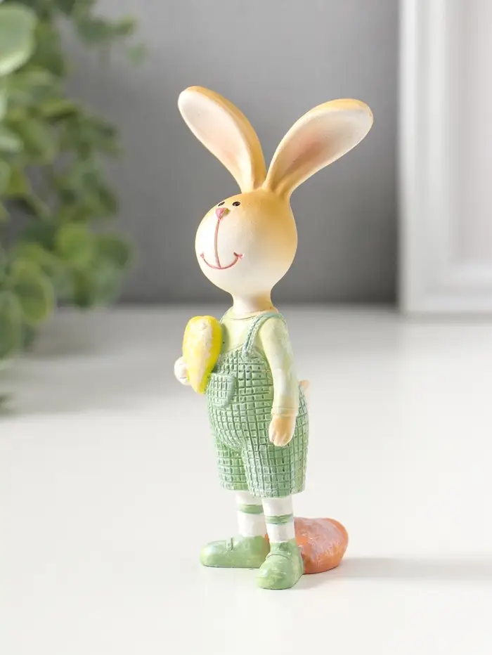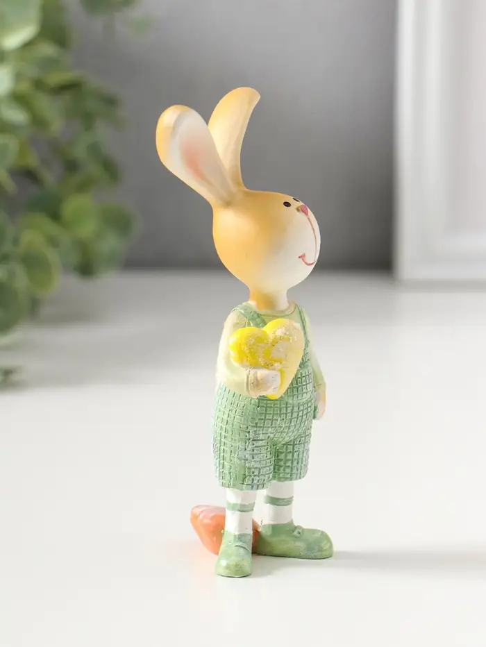 Сувенир полистоун "Зайчик в зеленый комбинезоне, с жёлтым сердцем" 13 см