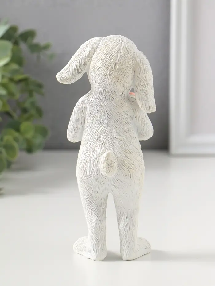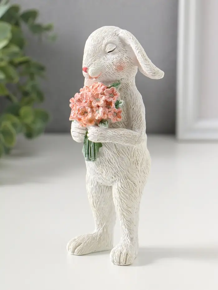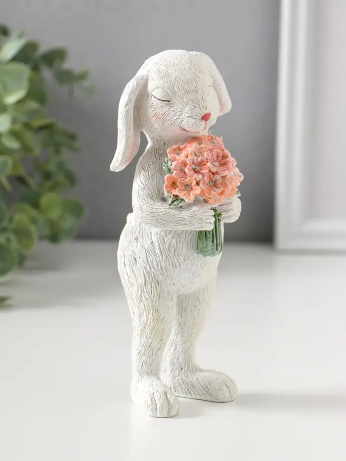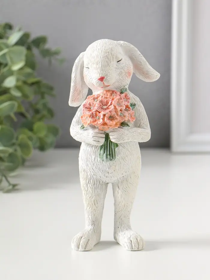 Сувенир полистоун "Белая зайка с букетом розовых цветов" 16 см