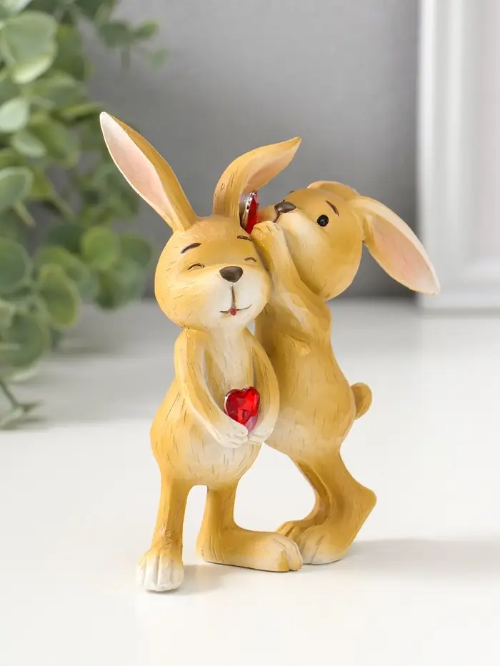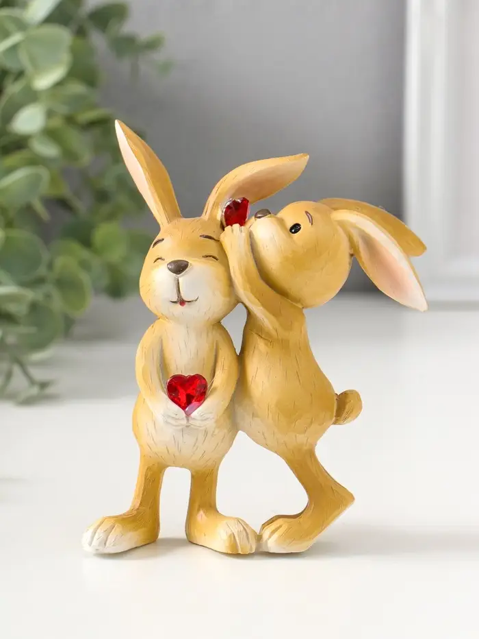 Сувенир полистоун "Зайчики с сердечком - хочешь расскажу секрет?" 12,5 см