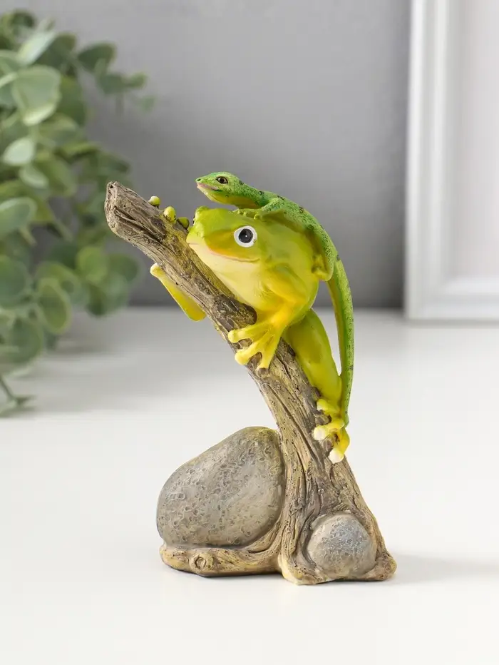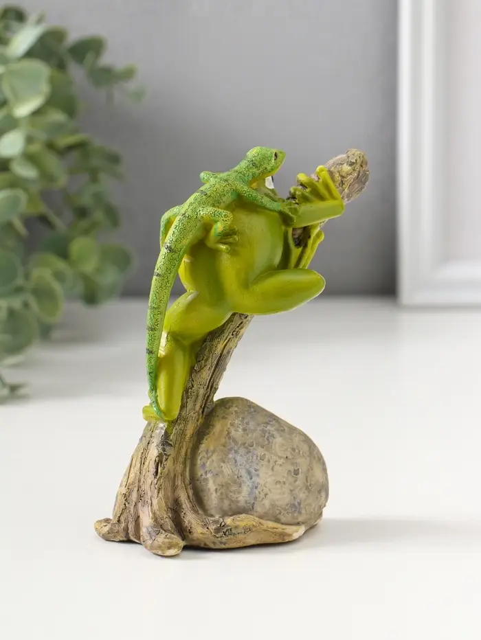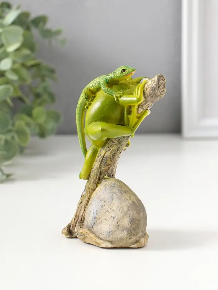 Сувенир полистоун "Лягушонок на дереве с ящерицей на спине" 12,5 см