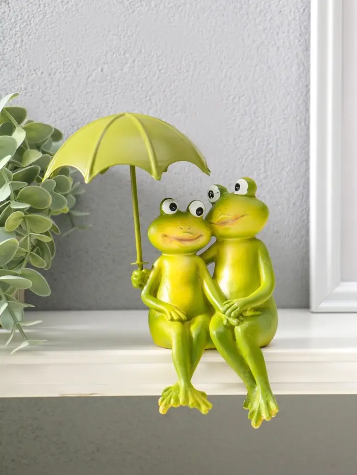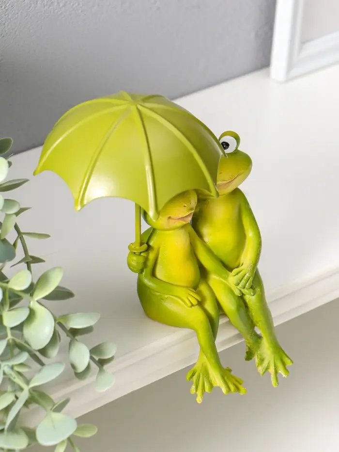 Сувенир полистоун "Влюблённые лягушата под зонтом" на полку 14 см
