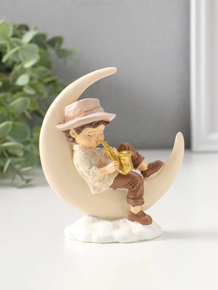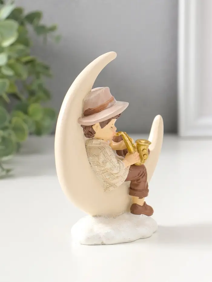 Сувенир полистоун "Мальчик на месяце играет на трубе" 13 см