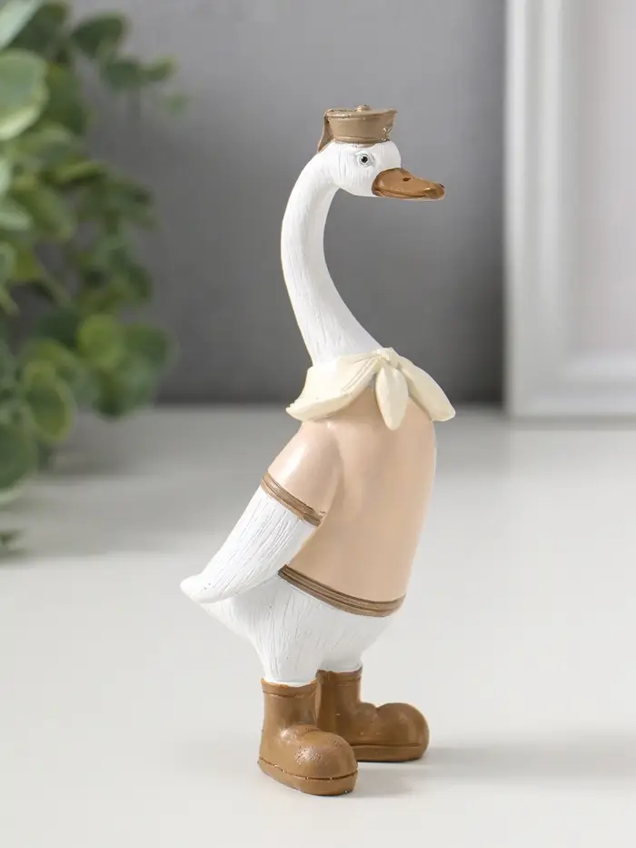 Сувенир полистоун "Гусь-морячок в бежевой рубашке" 14,5 см