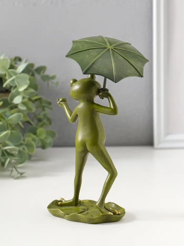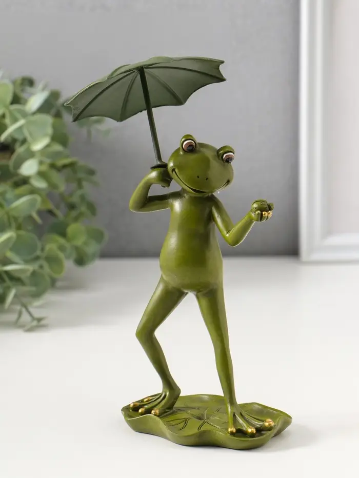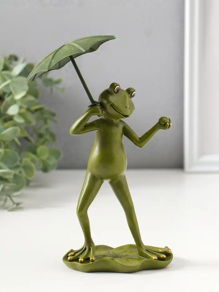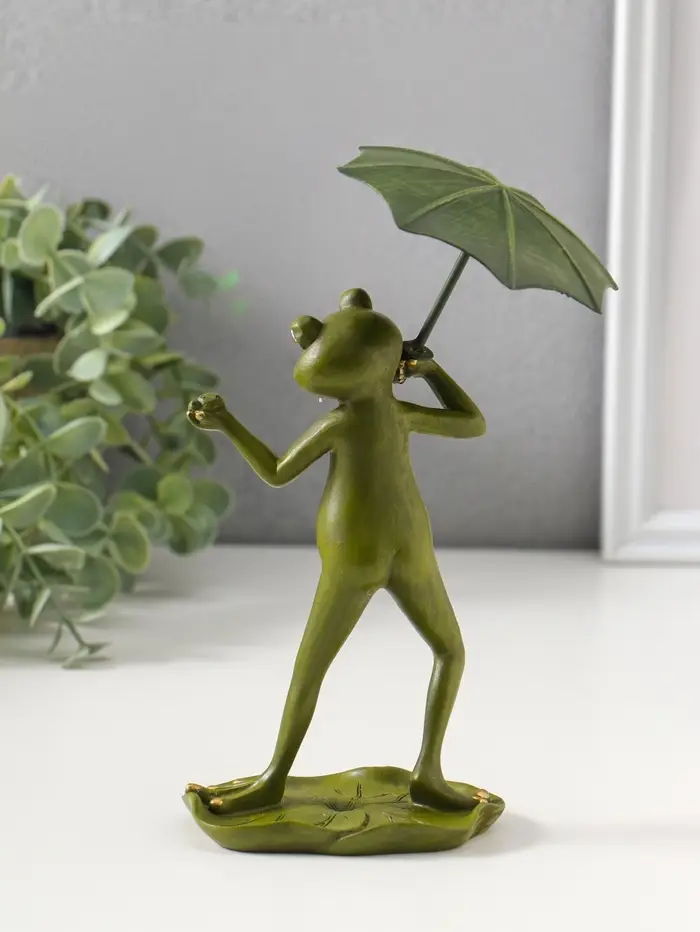 Сувенир полистоун "Танцующий лягушонок под зонтом, с божьей коровкой" 15,5 см