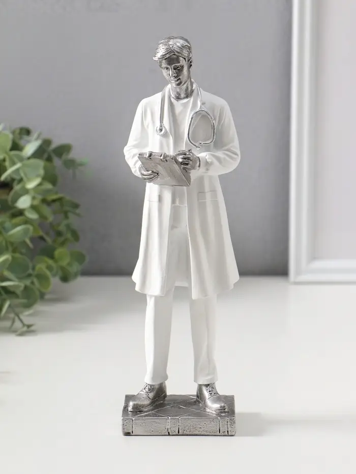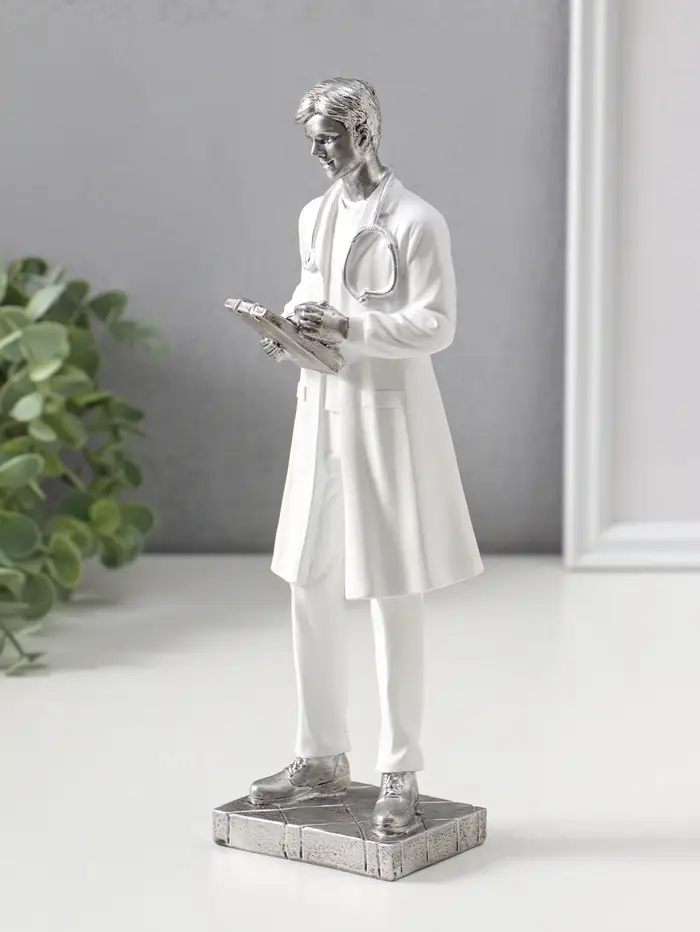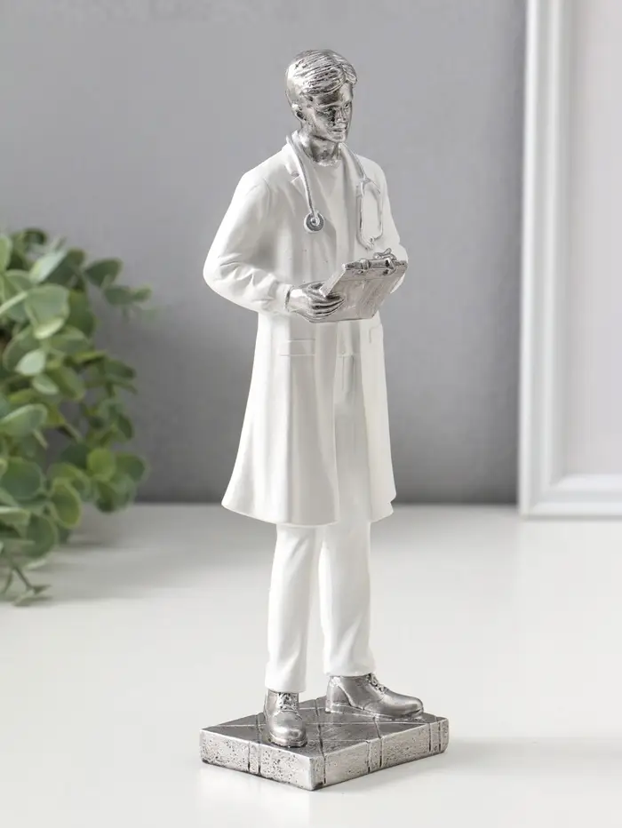 Сувенир полистоун "Мужчина-доктор в белом халате с медицинской картой" 25,5 см