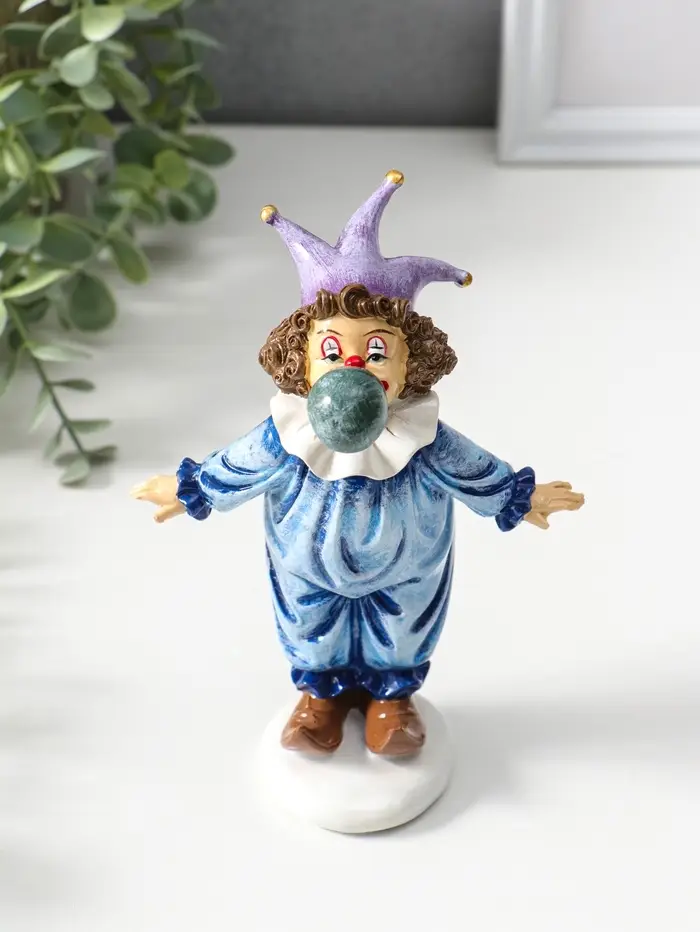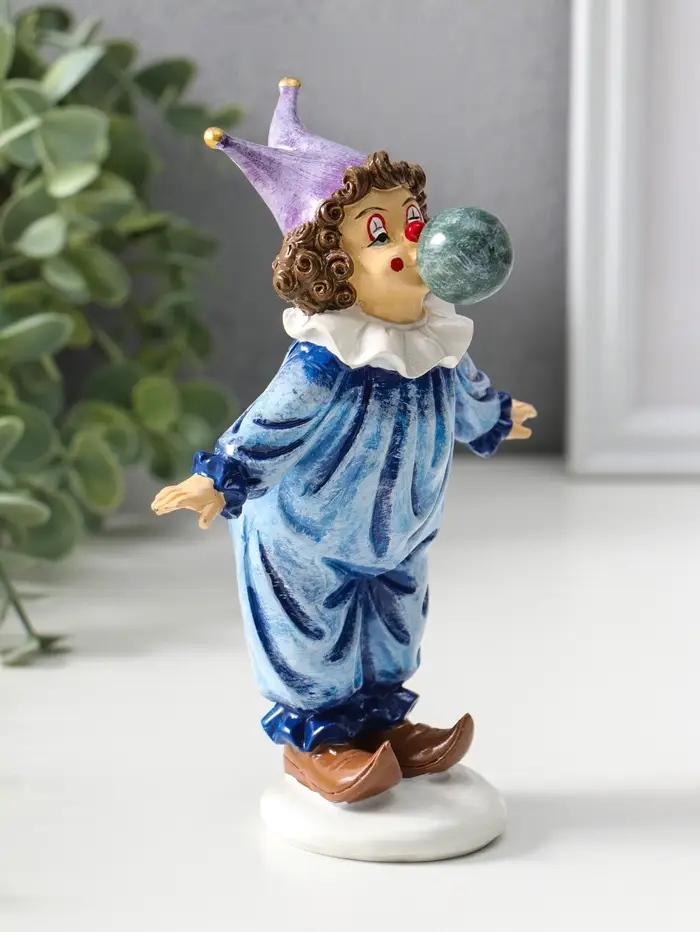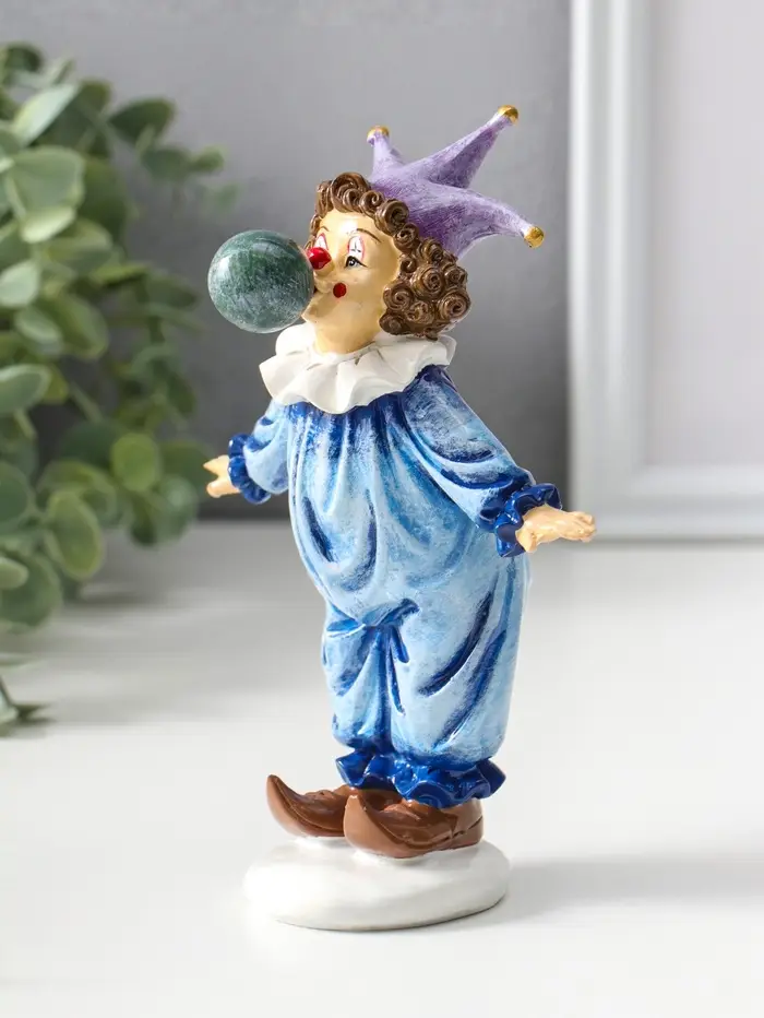 Сувенир полистоун "Клоун надувает шарик" сине-фиолетовый 16,5 см
