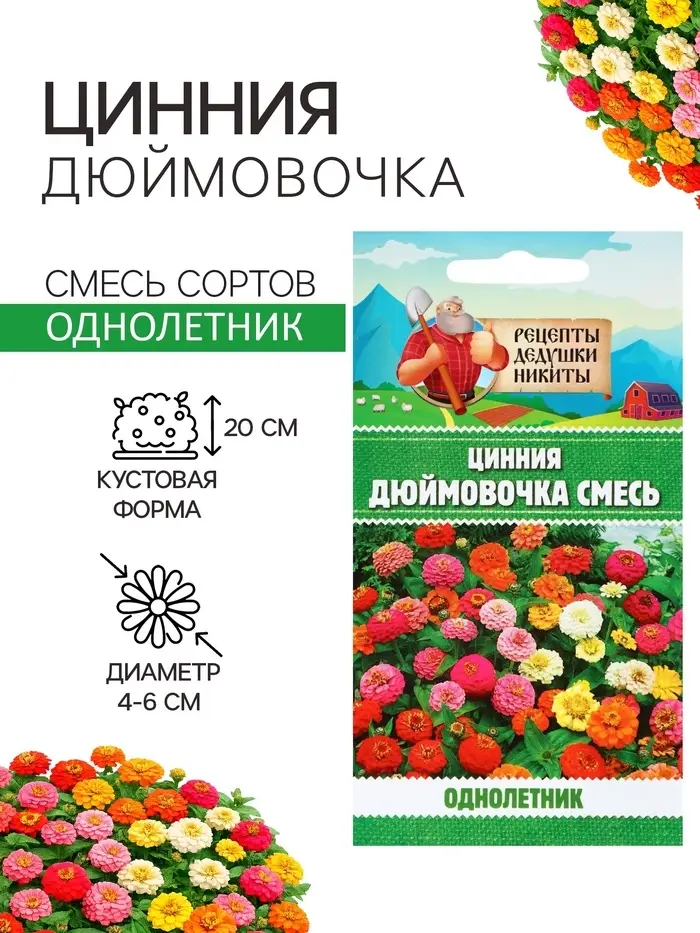 Семена цветов Цинния «Дюймовочка», 0.2 г, «Рецепты дедушки Никиты»