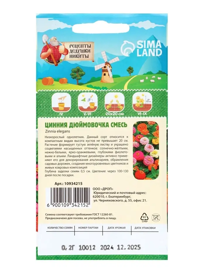Семена цветов Цинния "Дюймовочка", 0,2 г
