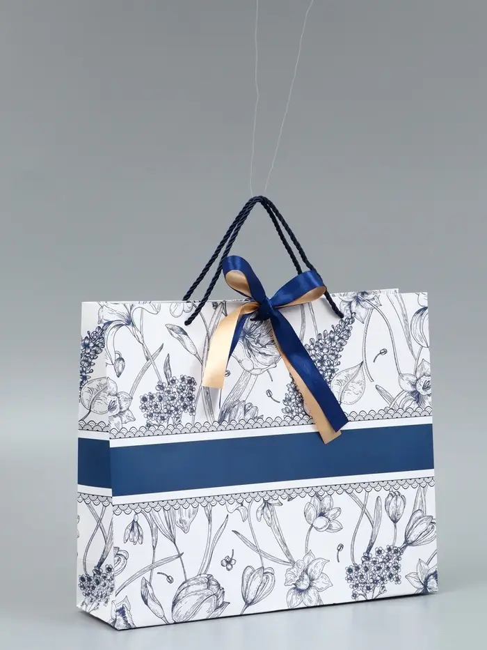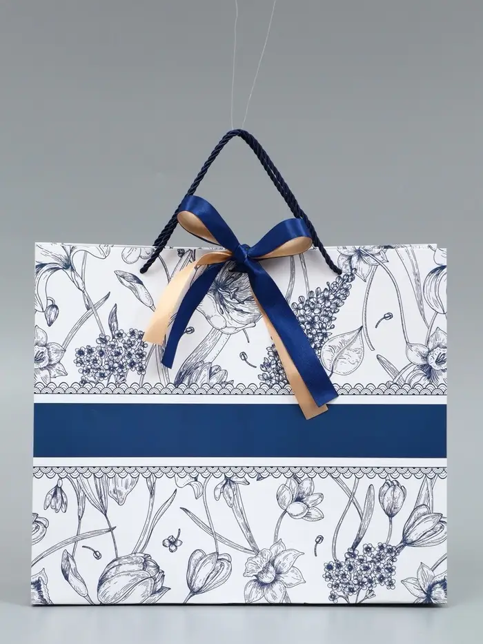 Пакет подарочный "Цветы", с бантом, 35 х 30 х 10 см