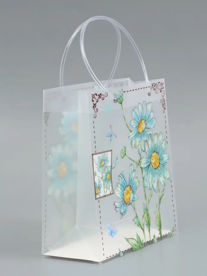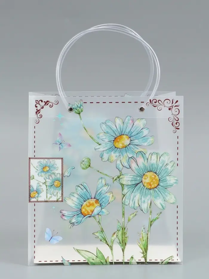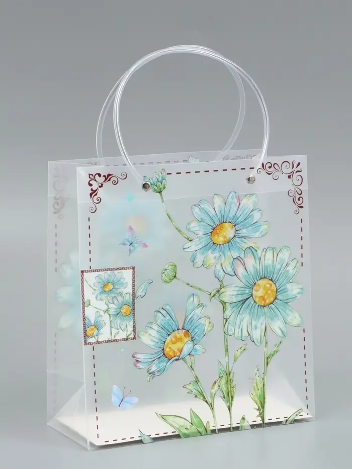 Пакет подарочный прозрачный, "Ромашки-васельки", 22 х 10 х 24 см