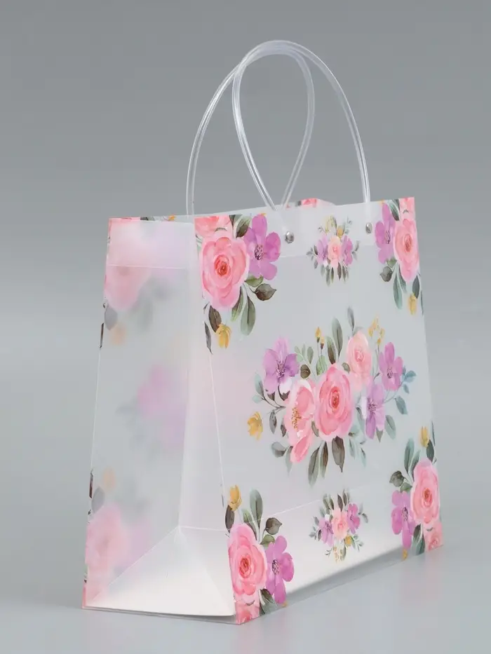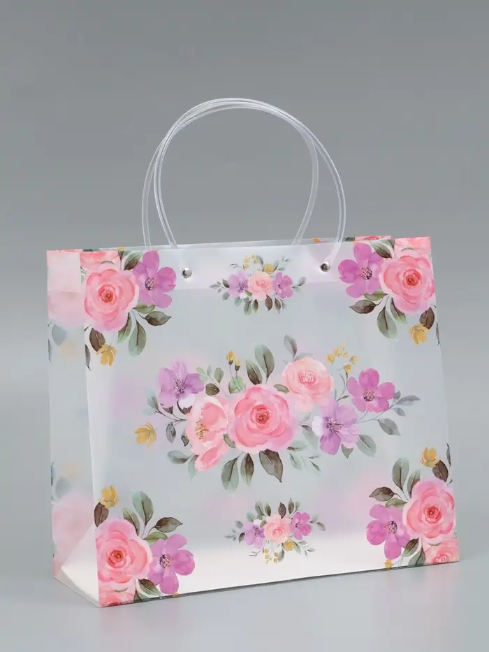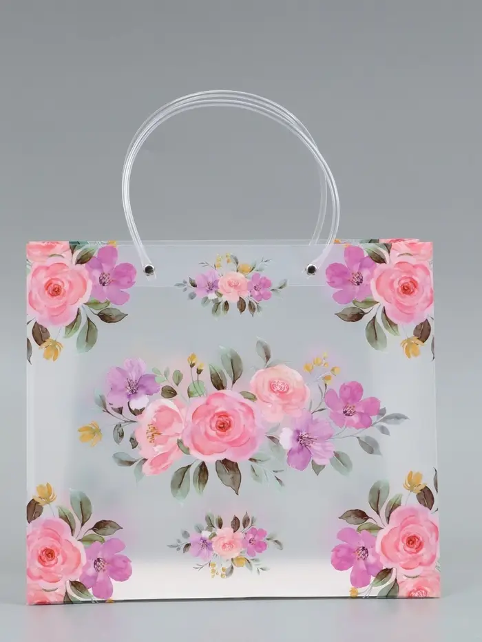 Пакет подарочный прозрачный , "Цветы" 30 х 26 х 12