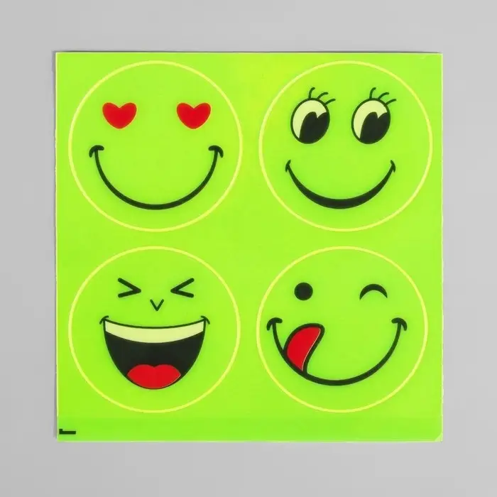 Светоотражающие наклейки «Смайлик», d = 5 см, 4 шт на листе, цвет жёлтый