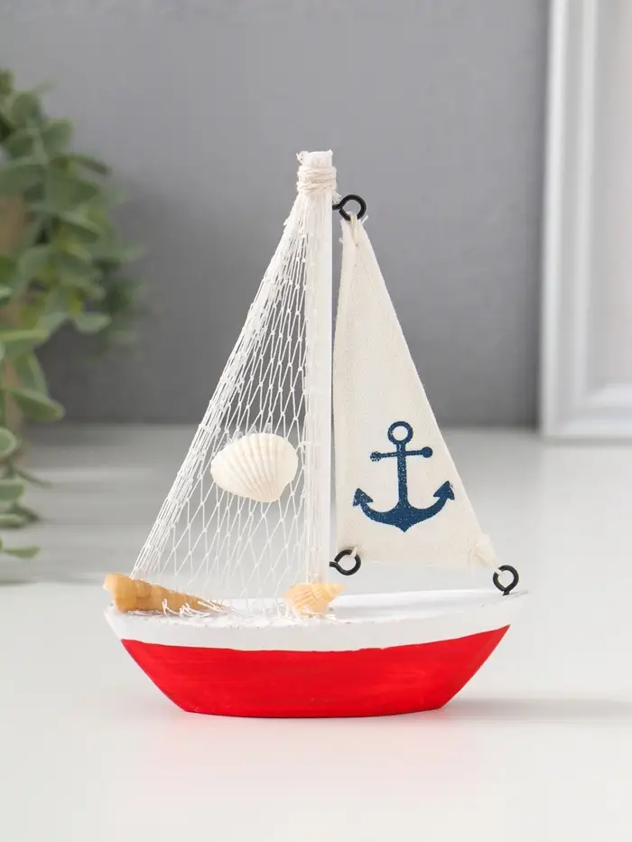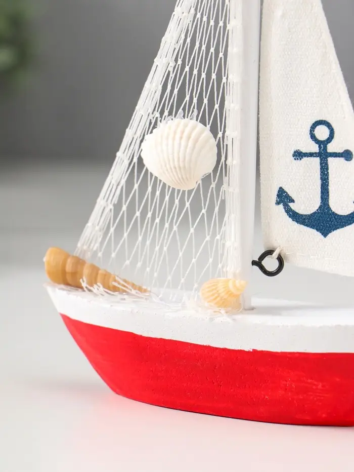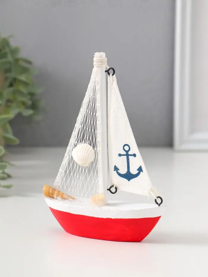 Сувенир дерево "Парусная лодка с якорем на парусе" бело-красный 11х2,5х14 см