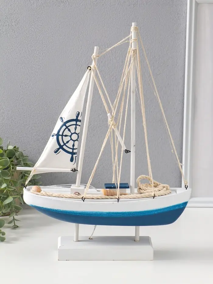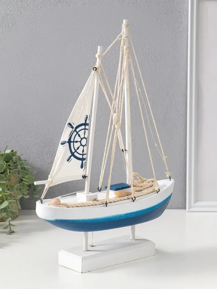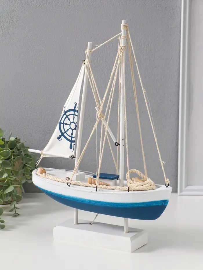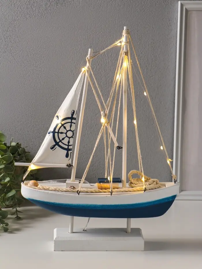 Сувенир дерево LED "Корабль со штурвалом на парусе"2хАА 28х8,5х39 см