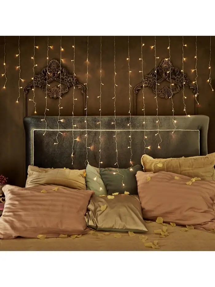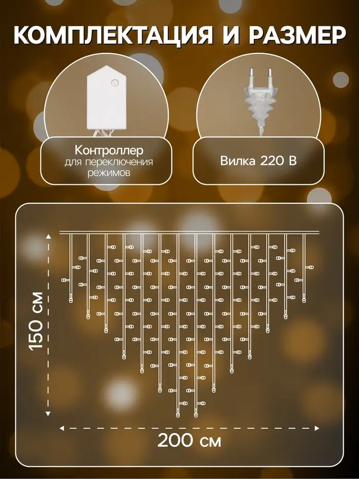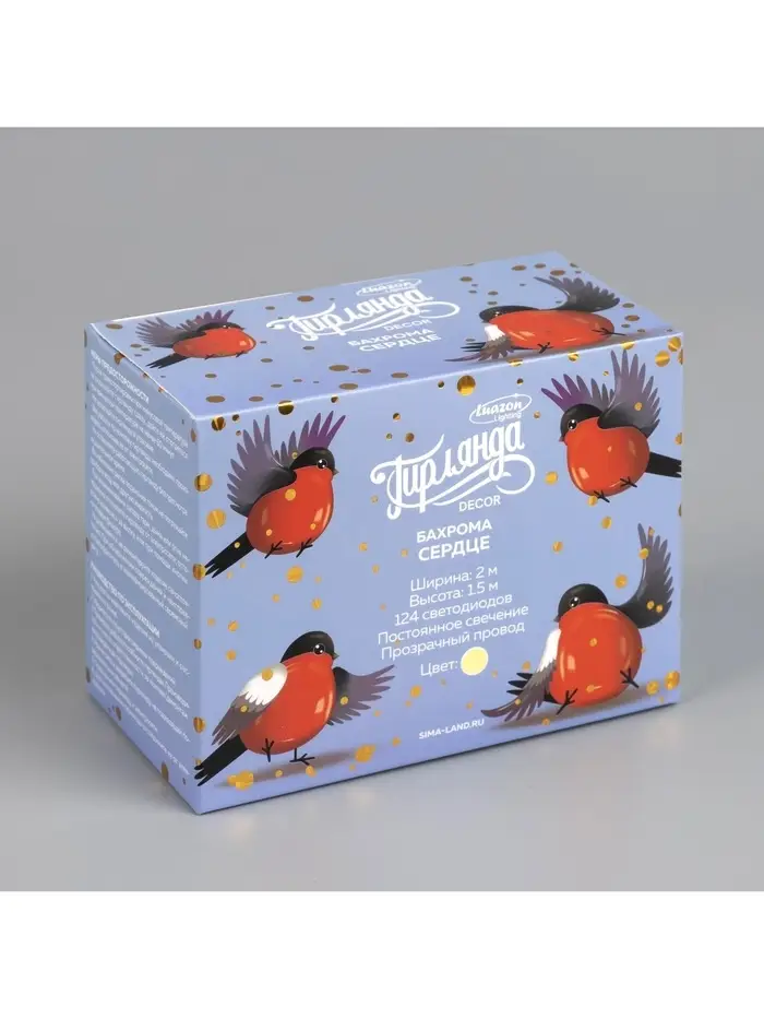 Гирлянда «Бахрома» 2×1.5 м с насадками «Сердце», IP20, прозрачная нить, 124 LED, свечение тёплое белое, 220 В
