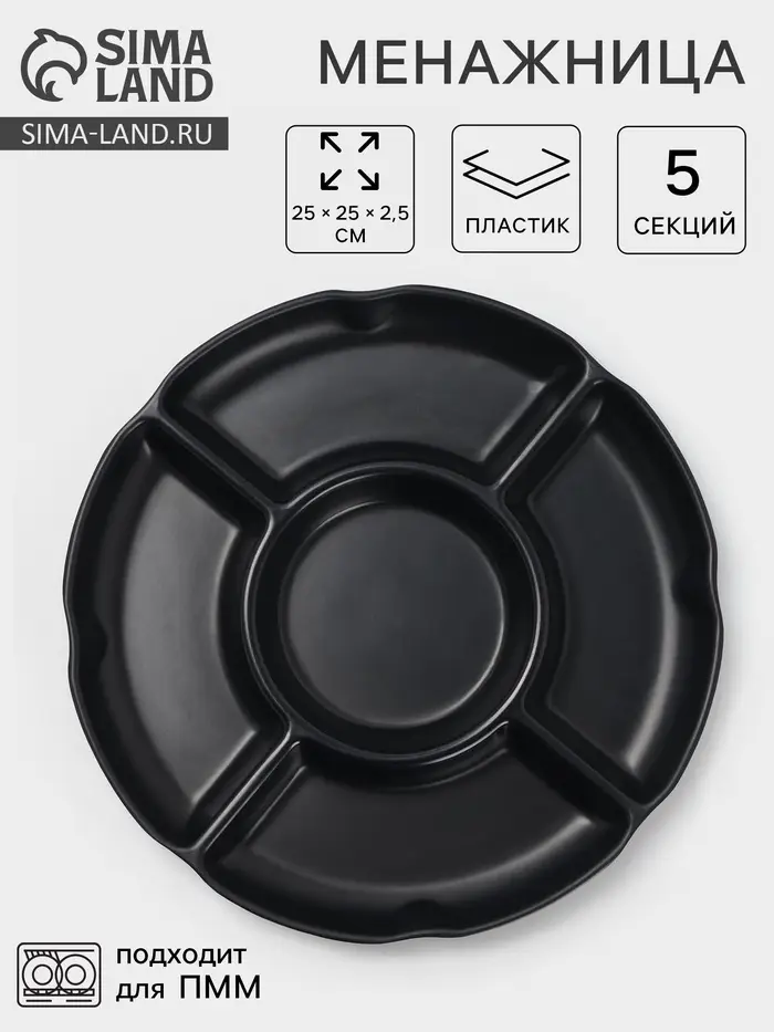 Менажница «Чёрный Восток», 5 секций, пластик, 25×2.5 см, диаметр центра 11 см, чёрная