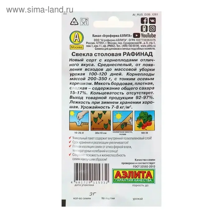 Семена Свекла "Рафинад" столовая, 3 г